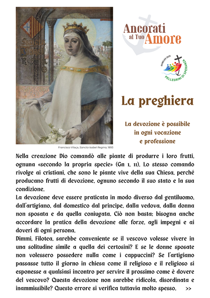 Preghiera – “La devozione è possibile in ogni vocazione e professione” (San Francesco di Sales, Vescovo) La parola chiave di questa Settimana sulla Quaresima: Ancorati al Tuo Amore… – Un tempo per riflettere (per tutta la Comunità ) [Diocesi di Novara]. Scarica il PDF: Ancorati al Tuo Amore… – per le famiglie (Il foglio settimanale con