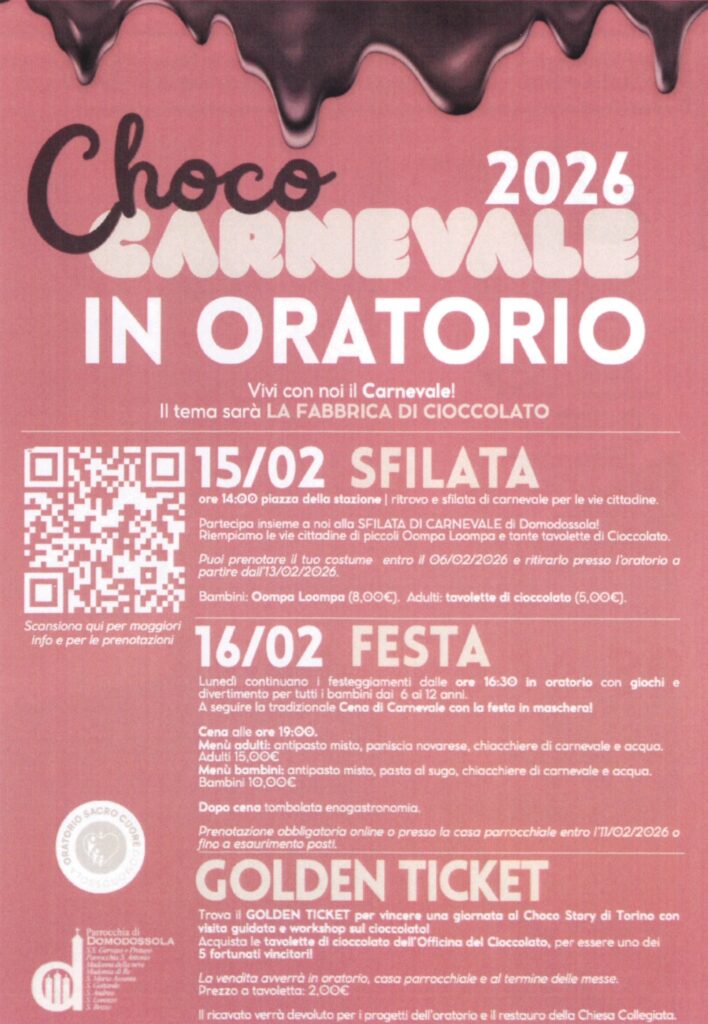 Choco Carnevale in Oratorio 2026 – 15/02/2026 e 16/02/2026