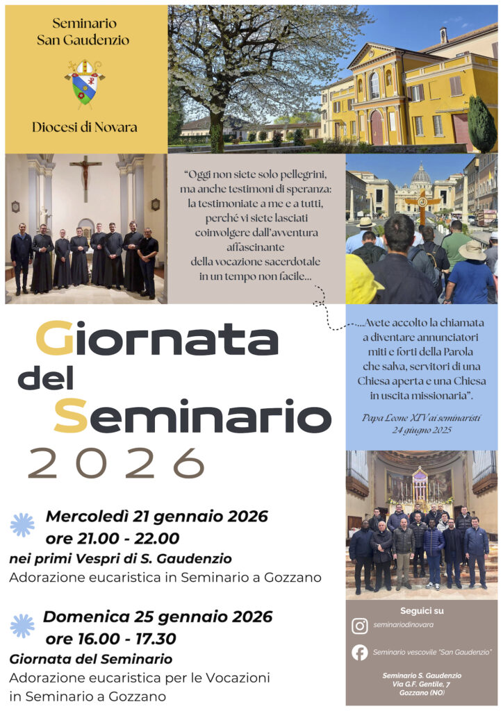 Domenica 25 gennaio 2026 ore 16:00-17:30 – Giornata del Seminario – Adorazione Eucaristica per le Vocazioni in Seminario a Gozzano (via Giacomo Filippo Gentile, 7 – Gozzano NO)