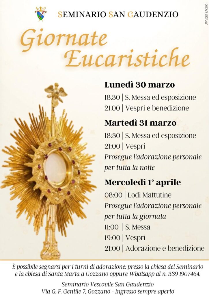 Giornate Eucaristiche – Seminario San Gaudenzio – 30/03/2026-31/03/2026-01/04/2026