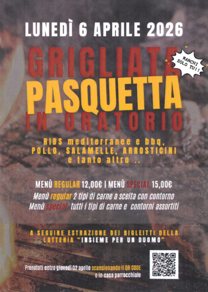Grigliata di Pasquetta in Oratorio – lunedì 06/04/2026