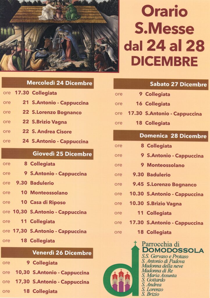 Orari Sante Messe di Natale 2025 (dal 24 al 28 dicembre 2025)